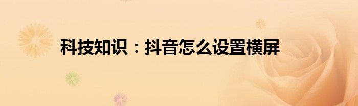 如今使用IT數碼設備的小伙伴們是越來越多了,那么IT數碼設備當中是有很多小技巧的,這些技巧很多小伙伴一般都是不知道如何來實用的,就好比最近就有很多小伙伴們想要知道抖音怎么設置橫屏,那么既然現在大家對于抖音怎么設置橫屏都感興趣,小編就來給大家分享下關于抖音怎么設置橫屏的一些信息吧。