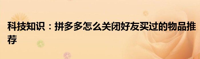 如今使用IT數碼設備的小伙伴們是越來越多了,那么IT數碼設備當中是有很多小技巧的,這些技巧很多小伙伴一般都是不知道如何來實用的,就好比最近就有很多小伙伴們想要知道拼多多怎么關閉好友買過的物品推薦,那么既然現在大家對于拼多多怎么關閉好友買過的物品推薦都感興趣,小編就來給大家分享下關于拼多多怎么關閉好友買過的物品推薦的一些信息吧。