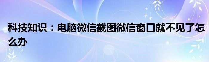 如今使用IT數碼設備的小伙伴們是越來越多了,那么IT數碼設備當中是有很多小技巧的,這些技巧很多小伙伴一般都是不知道如何來實用的,就好比最近就有很多小伙伴們想要知道電腦微信截圖微信窗口就不見了怎么辦,那么既然現在大家對于電腦微信截圖微信窗口就不見了怎么辦都感興趣,小編就來給大家分享下關于電腦微信截圖微信窗口就不見了怎么辦的一些信息吧。