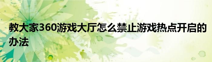 最近發(fā)現(xiàn)很多網(wǎng)友們對于360游戲大廳怎么禁止游戲熱點(diǎn)開啟問題都非常關(guān)注,而我們現(xiàn)在的生活基本上也都離不開手機(jī),想要了解最新的信息也都是直接在手機(jī)上進(jìn)行了解,那么既然現(xiàn)在大家都想要了解360游戲大廳怎么禁止游戲熱點(diǎn)開啟問題,小編今天也是特地到網(wǎng)上去搜集了一些與360游戲大廳怎么禁止游戲熱點(diǎn)開啟相關(guān)的信息,那么在這里小編就來給大家一起分享出來吧,讓大家能夠了解到更多自己想要了解到的信息。