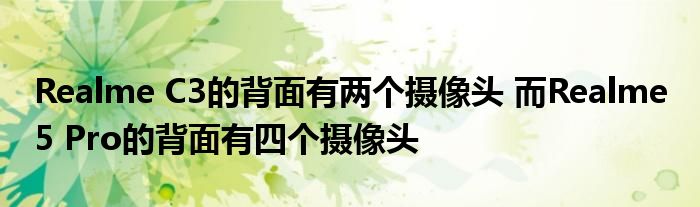 Realme C3上有一個雙后置攝像頭設置,包括一個具有f / 1.8光圈的12百萬像素主傳感器和一個具有f / 2.4光圈的2百萬像素輔助相機。在前面,水滴槽中裝有一個5百萬像素AI前置攝像頭。
