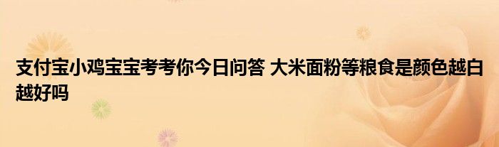 支付寶的螞蟻莊園小雞問答是每天都會有不同的答題出現(xiàn),一方面豐富我們的知識,另一方面也增加了養(yǎng)護小雞的樂趣,就像今天支付寶螞蟻莊園小雞問答就出現(xiàn)了支付寶小雞寶寶考考你今日問答 大米面粉等糧食是顏色越白越好嗎,那么這樣的問題可能對于很多小伙伴們并不知道,因為每個人的知識面是不同的,所以有的小伙伴知道支付寶小雞寶寶考考你今日問答 大米面粉等糧食是顏色越白越好嗎,而有的小伙伴就不是很了解支付寶小雞寶寶考考你今日問答 大米面粉等糧食是顏色越白越好嗎,那么其實這些都不重要,既然今天小伙伴們看到了小編的這篇文章,小編自然是會為大家來解答下支付寶小雞寶寶考考你今日問答 大米面粉等糧食是顏色越白越好嗎了,那么有興趣的小伙伴就可以接著往下看,本文會給大家指出正確的答案的哦。