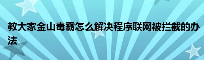 最近發現很多網友們對于金山毒霸怎么解決程序聯網被攔截問題都非常關注,而我們現在的生活基本上也都離不開手機,想要了解最新的信息也都是直接在手機上進行了解,那么既然現在大家都想要了解金山毒霸怎么解決程序聯網被攔截問題,小編今天也是特地到網上去搜集了一些與金山毒霸怎么解決程序聯網被攔截相關的信息,那么在這里小編就來給大家一起分享出來吧,讓大家能夠了解到更多自己想要了解到的信息。