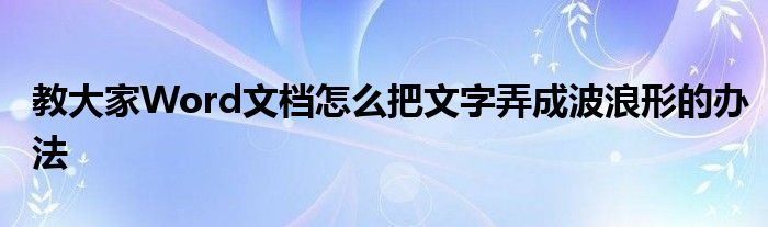 近期Word文檔怎么把文字弄成波浪形問題在網上得到了很多小伙伴們的關注,相信也是有很多小伙伴們在網上進行了一番了解了吧,不過這里小編還是想著去搜集一些與Word文檔怎么把文字弄成波浪形相關的信息分享給大家,因為我們每個人了解的的信息不同,那么對于Word文檔怎么把文字弄成波浪形的了解也是不同的,那么下面小編就把小編自己在網上搜集的相關信息分享給大家吧。