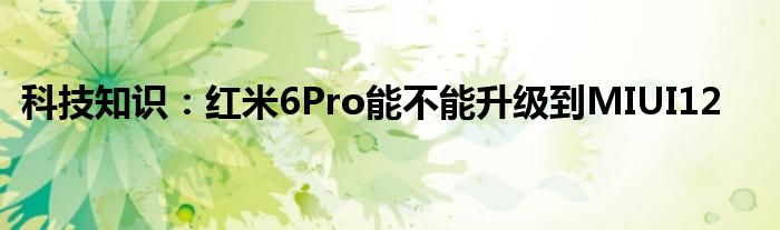 如今使用IT數碼設備的小伙伴們是越來越多了,那么IT數碼設備當中是有很多小技巧的,這些技巧很多小伙伴一般都是不知道如何來實用的,就好比最近就有很多小伙伴們想要知道紅米6Pro能不能升級到MIUI12,那么既然現在大家對于紅米6Pro能不能升級到MIUI12都感興趣,小編就來給大家分享下關于紅米6Pro能不能升級到MIUI12的一些信息吧。