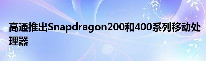 高通公司今天推出了兩款針對中端和入門級智能手機體驗的新型移動處理器。可能會使您相信這些數字,因此Snapdragon 200致力于實現價值與性能之間的平衡以及更長的電池壽命。Snapdragon 400旨在為“大批量”智能手機和平板電腦提供用戶期望的性能,連接性和電池壽命。