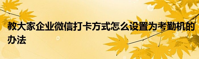 最近發(fā)現(xiàn)很多網(wǎng)友們對于企業(yè)微信打卡方式怎么設(shè)置為考勤機(jī)問題都非常關(guān)注,而我們現(xiàn)在的生活基本上也都離不開手機(jī),想要了解最新的信息也都是直接在手機(jī)上進(jìn)行了解,那么既然現(xiàn)在大家都想要了解企業(yè)微信打卡方式怎么設(shè)置為考勤機(jī)問題,小編今天也是特地到網(wǎng)上去搜集了一些與企業(yè)微信打卡方式怎么設(shè)置為考勤機(jī)相關(guān)的信息,那么在這里小編就來給大家一起分享出來吧,讓大家能夠了解到更多自己想要了解到的信息。