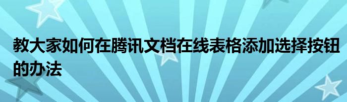 最近發(fā)現(xiàn)很多網(wǎng)友們對(duì)于如何在騰訊文檔在線(xiàn)表格添加選擇按鈕如何在騰訊文檔在線(xiàn)表格添加選擇按鈕問(wèn)題都非常關(guān)注,而我們現(xiàn)在的生活基本上也都離不開(kāi)手機(jī),想要了解最新的信息也都是直接在手機(jī)上進(jìn)行了解,那么既然現(xiàn)在大家都想要了解如何在騰訊文檔在線(xiàn)表格添加選擇按鈕如何在騰訊文檔在線(xiàn)表格添加選擇按鈕問(wèn)題,小編今天也是特地到網(wǎng)上去搜集了一些與如何在騰訊文檔在線(xiàn)表格添加選擇按鈕如何在騰訊文檔在線(xiàn)表格添加選擇按鈕相關(guān)的信息,那么在這里小編就來(lái)給大家一起分享出來(lái)吧,讓大家能夠了解到更多自己想要了解到的信息。