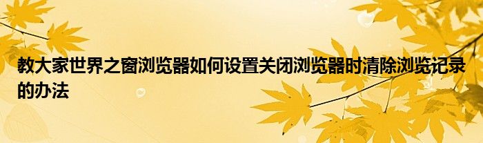 近期世界之窗瀏覽器如何設(shè)置關(guān)閉瀏覽器時(shí)清除瀏覽記錄世界之窗瀏覽器如何設(shè)置關(guān)閉瀏覽器時(shí)清除瀏覽記錄問(wèn)題在網(wǎng)上得到了很多小伙伴們的關(guān)注,相信也是有很多小伙伴們?cè)诰W(wǎng)上進(jìn)行了一番了解了吧,不過(guò)這里小編還是想著去搜集一些與世界之窗瀏覽器如何設(shè)置關(guān)閉瀏覽器時(shí)清除瀏覽記錄世界之窗瀏覽器如何設(shè)置關(guān)閉瀏覽器時(shí)清除瀏覽記錄相關(guān)的信息分享給大家,因?yàn)槲覀兠總€(gè)人了解的的信息不同,那么對(duì)于世界之窗瀏覽器如何設(shè)置關(guān)閉瀏覽器時(shí)清除瀏覽記錄世界之窗瀏覽器如何設(shè)置關(guān)閉瀏覽器時(shí)清除瀏覽記錄的了解也是不同的,那么下面小編就把小編自己在網(wǎng)上搜集的相關(guān)信息分享給大家吧。