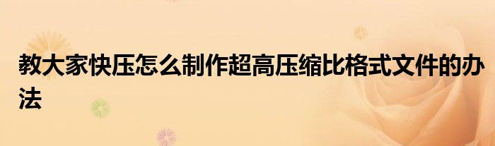快壓怎么制作超高壓縮比格式文件?