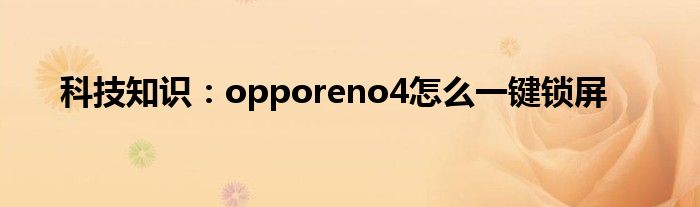 如今使用IT數碼設備的小伙伴們是越來越多了,那么IT數碼設備當中是有很多小技巧的,這些技巧很多小伙伴一般都是不知道如何來實用的,就好比最近就有很多小伙伴們想要知道opporeno4怎么一鍵鎖屏,那么既然現在大家對于opporeno4怎么一鍵鎖屏都感興趣,小編就來給大家分享下關于opporeno4怎么一鍵鎖屏的一些信息吧。