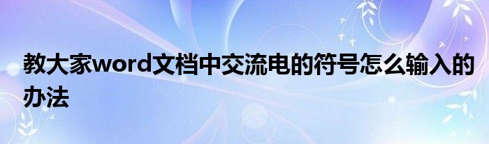 近期word文檔中交流電的符號怎么輸入word文檔中交流電的符號怎么輸入問題在網上得到了很多小伙伴們的關注,相信也是有很多小伙伴們在網上進行了一番了解了吧,不過這里小編還是想著去搜集一些與word文檔中交流電的符號怎么輸入word文檔中交流電的符號怎么輸入相關的信息分享給大家,因為我們每個人了解的的信息不同,那么對于word文檔中交流電的符號怎么輸入word文檔中交流電的符號怎么輸入的了解也是不同的,那么下面小編就把小編自己在網上搜集的相關信息分享給大家吧。