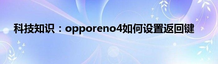 如今使用IT數碼設備的小伙伴們是越來越多了,那么IT數碼設備當中是有很多小技巧的,這些技巧很多小伙伴一般都是不知道如何來實用的,就好比最近就有很多小伙伴們想要知道opporeno4如何設置返回鍵,那么既然現在大家對于opporeno4如何設置返回鍵都感興趣,小編就來給大家分享下關于opporeno4如何設置返回鍵的一些信息吧。