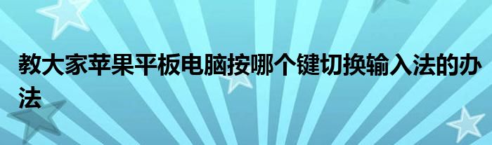 最近發(fā)現(xiàn)很多網(wǎng)友們對于蘋果平板電腦按哪個(gè)鍵切換輸入法蘋果平板電腦按哪個(gè)鍵切換輸入法問題都非常關(guān)注,而我們現(xiàn)在的生活基本上也都離不開手機(jī),想要了解最新的信息也都是直接在手機(jī)上進(jìn)行了解,那么既然現(xiàn)在大家都想要了解蘋果平板電腦按哪個(gè)鍵切換輸入法蘋果平板電腦按哪個(gè)鍵切換輸入法問題,小編今天也是特地到網(wǎng)上去搜集了一些與蘋果平板電腦按哪個(gè)鍵切換輸入法蘋果平板電腦按哪個(gè)鍵切換輸入法相關(guān)的信息,那么在這里小編就來給大家一起分享出來吧,讓大家能夠了解到更多自己想要了解到的信息。