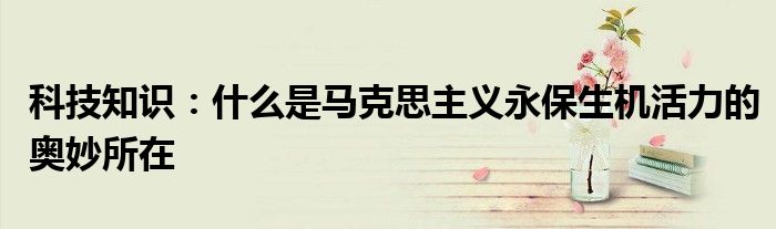 如今使用IT數(shù)碼設(shè)備的小伙伴們是越來越多了,那么IT數(shù)碼設(shè)備當(dāng)中是有很多小技巧的,這些技巧很多小伙伴一般都是不知道如何來實(shí)用的,就好比最近就有很多小伙伴們想要知道什么是馬克思主義永保生機(jī)活力的奧妙所在,那么既然現(xiàn)在大家對于什么是馬克思主義永保生機(jī)活力的奧妙所在都感興趣,小編就來給大家分享下關(guān)于什么是馬克思主義永保生機(jī)活力的奧妙所在的一些信息吧。