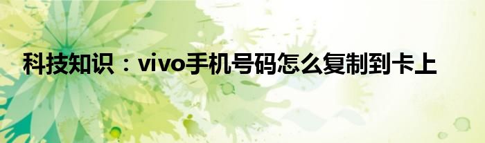 如今使用IT數碼設備的小伙伴們是越來越多了,那么IT數碼設備當中是有很多小技巧的,這些技巧很多小伙伴一般都是不知道如何來實用的,就好比最近就有很多小伙伴們想要知道vivo手機號碼怎么復制到卡上,那么既然現在大家對于vivo手機號碼怎么復制到卡上都感興趣,小編就來給大家分享下關于vivo手機號碼怎么復制到卡上的一些信息吧。