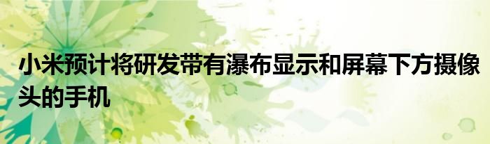 小編發現不少朋友對于 小米預計將研發帶有瀑布顯示和屏幕下方攝像頭的手機 這方面的信息都比較感興趣,小編就針對 小米預計將研發帶有瀑布顯示和屏幕下方攝像頭的手機 整理了一些相關方面的信息 在這里分享給大家。