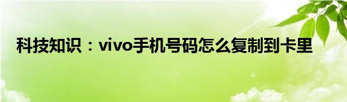 如今使用IT數碼設備的小伙伴們是越來越多了,那么IT數碼設備當中是有很多小技巧的,這些技巧很多小伙伴一般都是不知道如何來實用的,就好比最近就有很多小伙伴們想要知道vivo手機號碼怎么復制到卡里,那么既然現在大家對于vivo手機號碼怎么復制到卡里都感興趣,小編就來給大家分享下關于vivo手機號碼怎么復制到卡里的一些信息吧。