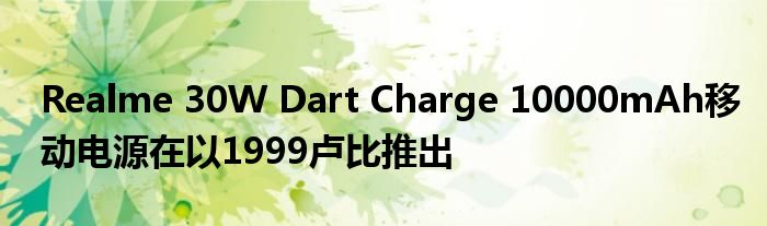 Realme 30W Dart Charge 10,000mAh移動電源的價格為Rs。1,999在。它將于7月21日下午12點開始在Flipkart和Realme的在線商店獨家發售。