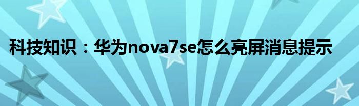 如今使用IT數碼設備的小伙伴們是越來越多了,那么IT數碼設備當中是有很多小技巧的,這些技巧很多小伙伴一般都是不知道如何來實用的,就好比最近就有很多小伙伴們想要知道華為nova7se怎么亮屏消息提示,那么既然現在大家對于華為nova7se怎么亮屏消息提示都感興趣,小編就來給大家分享下關于華為nova7se怎么亮屏消息提示的一些信息吧。