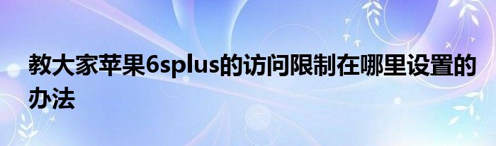 最近發現很多網友們對于蘋果6splus的訪問限制在哪里設置蘋果6splus的訪問限制在哪里設置問題都非常關注,而我們現在的生活基本上也都離不開手機,想要了解最新的信息也都是直接在手機上進行了解,那么既然現在大家都想要了解蘋果6splus的訪問限制在哪里設置蘋果6splus的訪問限制在哪里設置問題,小編今天也是特地到網上去搜集了一些與蘋果6splus的訪問限制在哪里設置蘋果6splus的訪問限制在哪里設置相關的信息,那么在這里小編就來給大家一起分享出來吧,讓大家能夠了解到更多自己想要了解到的信息。