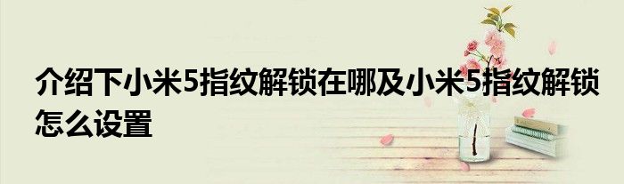 今天小編花姐給大家整理關(guān)于小米5指紋解鎖在哪及小米5指紋解鎖怎么設(shè)置,讓大家對于小米5指紋解鎖在哪及小米5指紋解鎖怎么設(shè)置有一個全方面的了解,那么接下來就由花姐來給大家做個詳細的介紹吧。