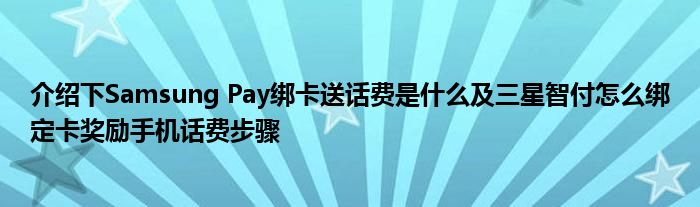 今天小編花姐給大家整理關于Samsung Pay綁卡送話費是什么及三星智付怎么綁定卡獎勵手機話費步驟,讓大家對于Samsung Pay綁卡送話費是什么及三星智付怎么綁定卡獎勵手機話費步驟有一個全方面的了解,那么接下來就由花姐來給大家做個詳細的介紹吧。
