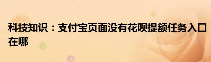 如今使用IT數碼設備的小伙伴們是越來越多了,那么IT數碼設備當中是有很多小技巧的,這些技巧很多小伙伴一般都是不知道如何來實用的,就好比最近就有很多小伙伴們想要知道支付寶頁面沒有花唄提額任務入口在哪,那么既然現在大家對于支付寶頁面沒有花唄提額任務入口在哪都感興趣,小編就來給大家分享下關于支付寶頁面沒有花唄提額任務入口在哪的一些信息吧。