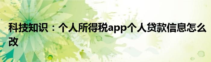 如今使用IT數碼設備的小伙伴們是越來越多了,那么IT數碼設備當中是有很多小技巧的,這些技巧很多小伙伴一般都是不知道如何來實用的,就好比最近就有很多小伙伴們想要知道個人所得稅app個人貸款信息怎么改,那么既然現在大家對于個人所得稅app個人貸款信息怎么改都感興趣,小編就來給大家分享下關于個人所得稅app個人貸款信息怎么改的一些信息吧。