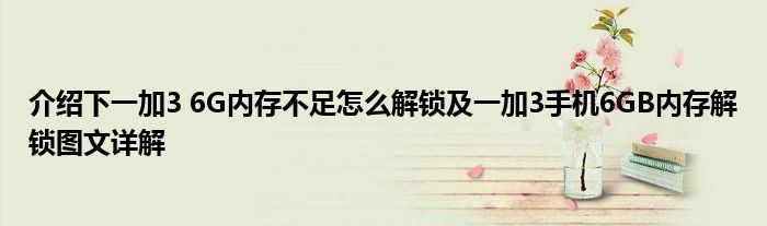 1.一加3 6G內(nèi)存不足怎么解鎖