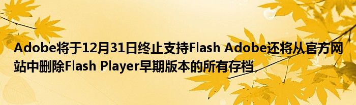 近日有關于Adobe將于12月31日終止支持Flash Adobe還將從官方網站中刪除Flash Player早期版本的所有存檔的問題受到了很多網友們的關注,大多數網友都想要知道Adobe將于12月31日終止支持Flash Adobe還將從官方網站中刪除Flash Player早期版本的所有存檔的具體情況,那么關于到Adobe將于12月31日終止支持Flash Adobe還將從官方網站中刪除Flash Player早期版本的所有存檔的相關信息,小編也是在網上進行了一系列的信息,那么接下來就由小編來給大家分享下小編所收集到與Adobe將于12月31日終止支持Flash Adobe還將從官方網站中刪除Flash Player早期版本的所有存檔相關的信息吧(以下內容來自于網絡非小編所寫,如有侵權請與站長聯系刪除)