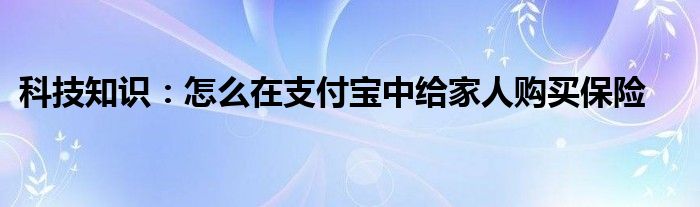 如今使用IT數碼設備的小伙伴們是越來越多了,那么IT數碼設備當中是有很多小技巧的,這些技巧很多小伙伴一般都是不知道如何來實用的,就好比最近就有很多小伙伴們想要知道怎么在支付寶中給家人購買保險,那么既然現在大家對于怎么在支付寶中給家人購買保險都感興趣,小編就來給大家分享下關于怎么在支付寶中給家人購買保險的一些信息吧。