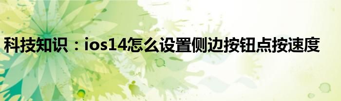 如今使用IT數(shù)碼設備的小伙伴們是越來越多了,那么IT數(shù)碼設備當中是有很多小技巧的,這些技巧很多小伙伴一般都是不知道如何來實用的,就好比最近就有很多小伙伴們想要知道ios14怎么設置側(cè)邊按鈕點按速度,那么既然現(xiàn)在大家對于ios14怎么設置側(cè)邊按鈕點按速度都感興趣,小編就來給大家分享下關(guān)于ios14怎么設置側(cè)邊按鈕點按速度的一些信息吧。