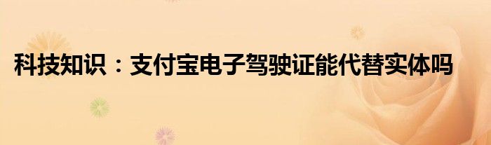 如今使用IT數碼設備的小伙伴們是越來越多了,那么IT數碼設備當中是有很多小技巧的,這些技巧很多小伙伴一般都是不知道如何來實用的,就好比最近就有很多小伙伴們想要知道支付寶電子駕駛證能代替實體嗎,那么既然現在大家對于支付寶電子駕駛證能代替實體嗎都感興趣,小編就來給大家分享下關于支付寶電子駕駛證能代替實體嗎的一些信息吧。