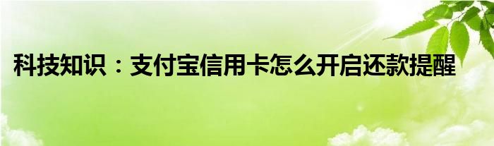 如今使用IT數碼設備的小伙伴們是越來越多了,那么IT數碼設備當中是有很多小技巧的,這些技巧很多小伙伴一般都是不知道如何來實用的,就好比最近就有很多小伙伴們想要知道支付寶信用卡怎么開啟還款提醒,那么既然現在大家對于支付寶信用卡怎么開啟還款提醒都感興趣,小編就來給大家分享下關于支付寶信用卡怎么開啟還款提醒的一些信息吧。