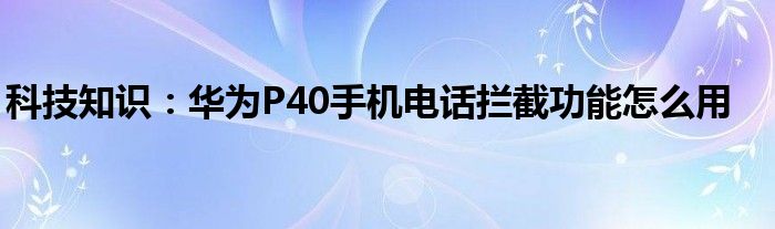 如今使用IT數碼設備的小伙伴們是越來越多了,那么IT數碼設備當中是有很多小技巧的,這些技巧很多小伙伴一般都是不知道如何來實用的,就好比最近就有很多小伙伴們想要知道華為P40手機電話攔截功能怎么用,那么既然現在大家對于華為P40手機電話攔截功能怎么用都感興趣,小編就來給大家分享下關于華為P40手機電話攔截功能怎么用的一些信息吧。