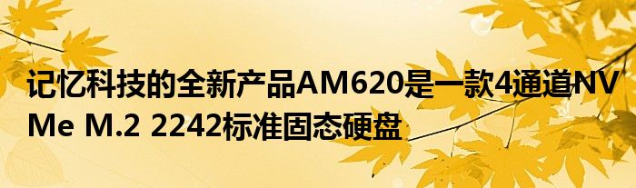 今天筆者要為大家評測的來自記憶科技的全新產(chǎn)品——AM620,這是一款4通道NVMe M.2 2242標(biāo)準(zhǔn)固態(tài)硬盤。