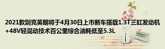 今日,我們于上汽通用官方獲悉, 2021款別克英朗將于4月30日上市,據(jù)了解,新車將首次搭載1.3T三缸發(fā)動(dòng)機(jī)+48V輕混動(dòng)技術(shù),百公里綜合油耗低至5.3L。