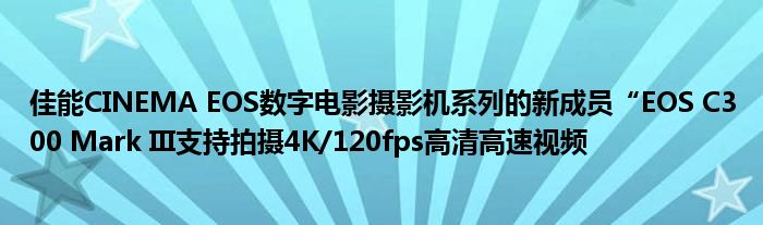 佳能發布數字攝影機EOS C300 Mark III:可拍4K120fps