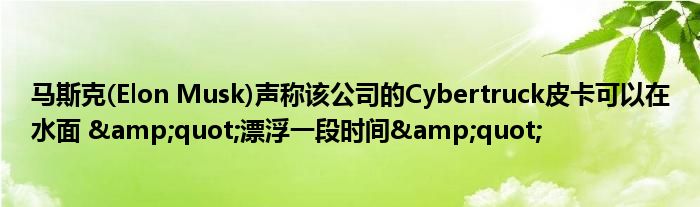 特斯拉CEO埃隆-馬斯克(Elon Musk)在周一的一條推文中聲稱,該公司的Cybertruck皮卡可以在水面 "漂浮一段時間",以回應人們對其涉水能力的質疑。
