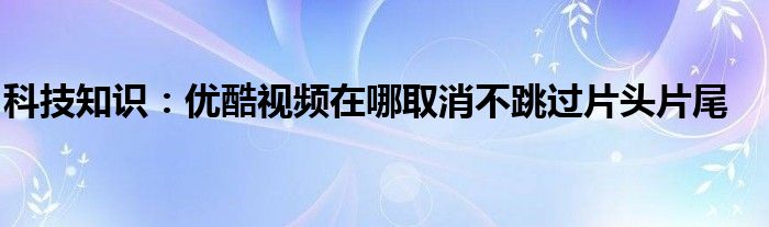 如今使用IT數碼設備的小伙伴們是越來越多了,那么IT數碼設備當中是有很多小技巧的,這些技巧很多小伙伴一般都是不知道如何來實用的,就好比最近就有很多小伙伴們想要知道優酷視頻在哪取消不跳過片頭片尾,那么既然現在大家對于優酷視頻在哪取消不跳過片頭片尾都感興趣,小編就來給大家分享下關于優酷視頻在哪取消不跳過片頭片尾的一些信息吧。