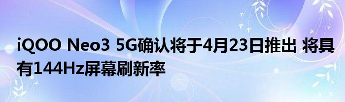 小編發(fā)現(xiàn)不少朋友對于 iQOO Neo3 5G確認(rèn)將于4月23日推出 將具有144Hz屏幕刷新率 這方面的信息都比較感興趣,小編就針對 iQOO Neo3 5G確認(rèn)將于4月23日推出 將具有144Hz屏幕刷新率 整理了一些相關(guān)方面的信息 在這里分享給大家。