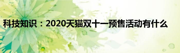如今使用IT數(shù)碼設備的小伙伴們是越來越多了,那么IT數(shù)碼設備當中是有很多小技巧的,這些技巧很多小伙伴一般都是不知道如何來實用的,就好比最近就有很多小伙伴們想要知道2020天貓雙十一預售活動有什么,那么既然現(xiàn)在大家對于2020天貓雙十一預售活動有什么都感興趣,小編就來給大家分享下關(guān)于2020天貓雙十一預售活動有什么的一些信息吧。