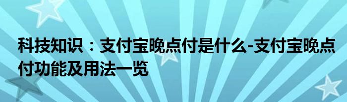 如今使用IT數碼設備的小伙伴們是越來越多了,那么IT數碼設備當中是有很多小技巧的,這些技巧很多小伙伴一般都是不知道如何來實用的,就好比最近就有很多小伙伴們想要知道支付寶晚點付是什么-支付寶晚點付功能及用法一覽,那么既然現在大家對于支付寶晚點付是什么-支付寶晚點付功能及用法一覽都感興趣,小編就來給大家分享下關于支付寶晚點付是什么-支付寶晚點付功能及用法一覽的一些信息吧。