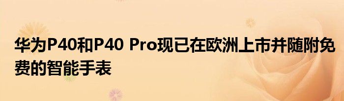 小編發現不少朋友對于 華為P40和P40 Pro現已在歐洲上市并隨附免費的智能手表 這方面的信息都比較感興趣,小編就針對 華為P40和P40 Pro現已在歐洲上市并隨附免費的智能手表 整理了一些相關方面的信息 在這里分享給大家。