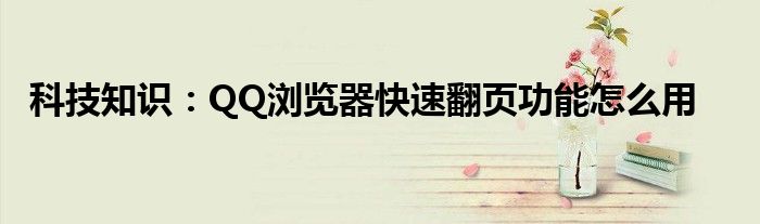 如今使用IT數(shù)碼設(shè)備的小伙伴們是越來越多了,那么IT數(shù)碼設(shè)備當(dāng)中是有很多小技巧的,這些技巧很多小伙伴一般都是不知道如何來實(shí)用的,就好比最近就有很多小伙伴們想要知道QQ瀏覽器快速翻頁功能怎么用,那么既然現(xiàn)在大家對(duì)于QQ瀏覽器快速翻頁功能怎么用都感興趣,小編就來給大家分享下關(guān)于QQ瀏覽器快速翻頁功能怎么用的一些信息吧。