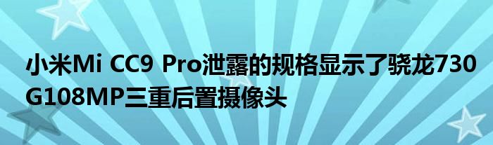 小米于今年7月在推出了Mi CC9系列智能手機,包括CC9,CC9e和CC9 Meitu Custom Edition。現在據說該公司將于10月24日在推出Mi CC9 Pro。在發布之前,提示者分享了即將推出的Xiaomi設備的完整規格。