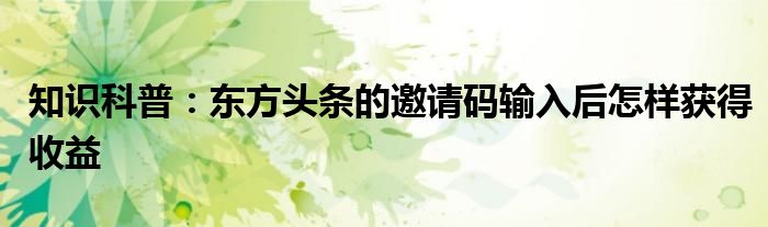 如今隨著人們生活品質(zhì)越來(lái)越高,大家對(duì)于生活方面的追求也是越來(lái)越多了,那么既然對(duì)于生活方面的知識(shí)需求了解,那么小編今天就來(lái)給大家針對(duì)東方頭條的邀請(qǐng)碼輸入后怎樣獲得收益這方面的知識(shí)來(lái)進(jìn)行一個(gè)介紹吧。