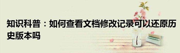 如今隨著人們生活品質(zhì)越來越高,大家對于生活方面的追求也是越來越多了,那么既然對于生活方面的知識需求了解,那么小編今天就來給大家針對如何查看文檔修改記錄可以還原歷史版本嗎這方面的知識來進行一個介紹吧。