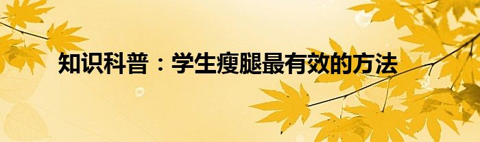 如今隨著人們生活品質越來越高,大家對于生活方面的追求也是越來越多了,那么既然對于生活方面的知識需求了解,那么小編今天就來給大家針對學生瘦腿最有效的方法這方面的知識來進行一個介紹吧。